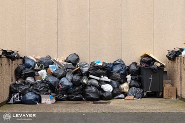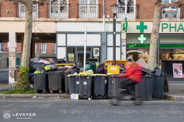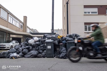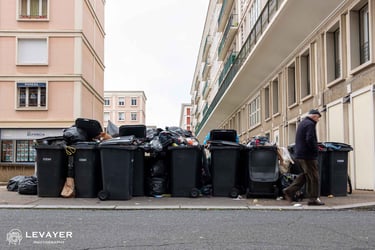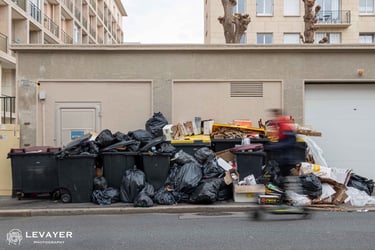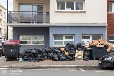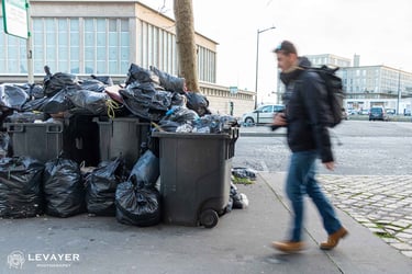 Cette série de photographies a été réalisée lors du mouvement de grève des éboueurs en 2023 à Le Havre en Normandie. Pour moi, ces images vont au-delà de la simple représentation d'une contestation sociale. Elles démontrent de manière frappante la quantité de déchets qui peut être produite en un laps de temps relativement court. Ce que j'ai capturé à travers ces photos n'est que le fruit de quelques semaines de grève, et pourtant l'accumulation d'ordures dans une ville comme Le Havre a été phénoménale. En l'espace d'un mois de grève, les trottoirs et routes étaient littéralement engloutis par les déchets et les sacs-poubelles, créant un spectacle choquant. Les mouettes et goélands déchiraient les sacs, heureux de cette abondance soudaine de nourriture. Et contre toute attente, un certain nombre de ces déchets a même fini par se retrouver dans la mer, soulignant les conséquences environnementales désastreuses de cette situation.